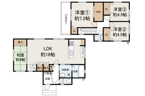 - LDK約18帖のゆったりとした4LDK!家族の会話が自然に生まれるリビング階段が魅力!収納も多数あり!