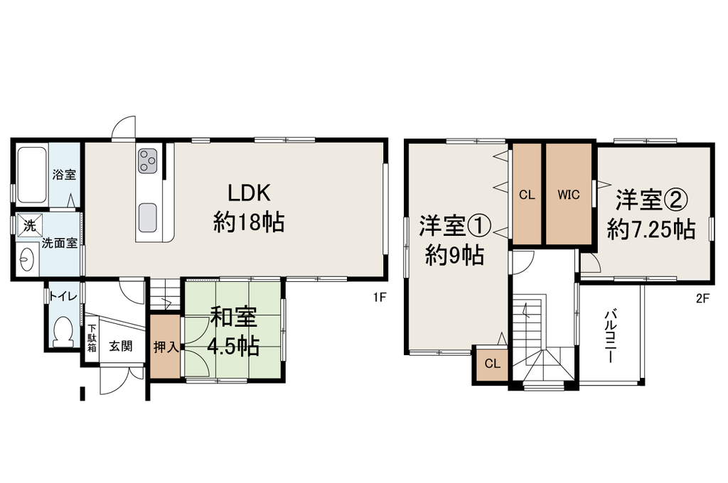 | 1階面積 / 2階面積 | 1階:52.17㎡ / 2階:40.57㎡ | 構造規模 | 木造 地上2階 |