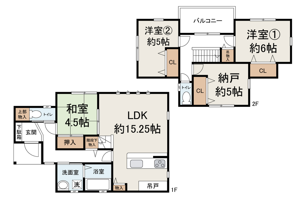 | 1階面積 / 2階面積 | 1階:52.65㎡ / 2階:39.69㎡ | 構造規模 | 木造 地上2階 |
