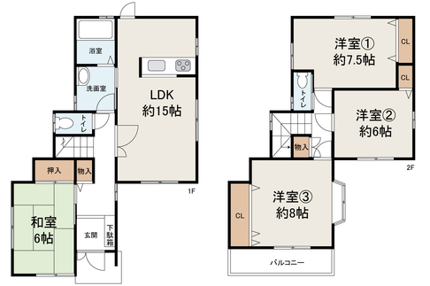 | 1階面積 / 2階面積 | 1階:55.48㎡ / 2階:47.20㎡ | 構造規模 | 木造 地上2階 |