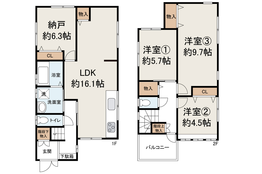 | 1階面積 / 2階面積 | 1階:52.24㎡ / 2階:45.36㎡ | 構造規模 | 木造 地上2階 |