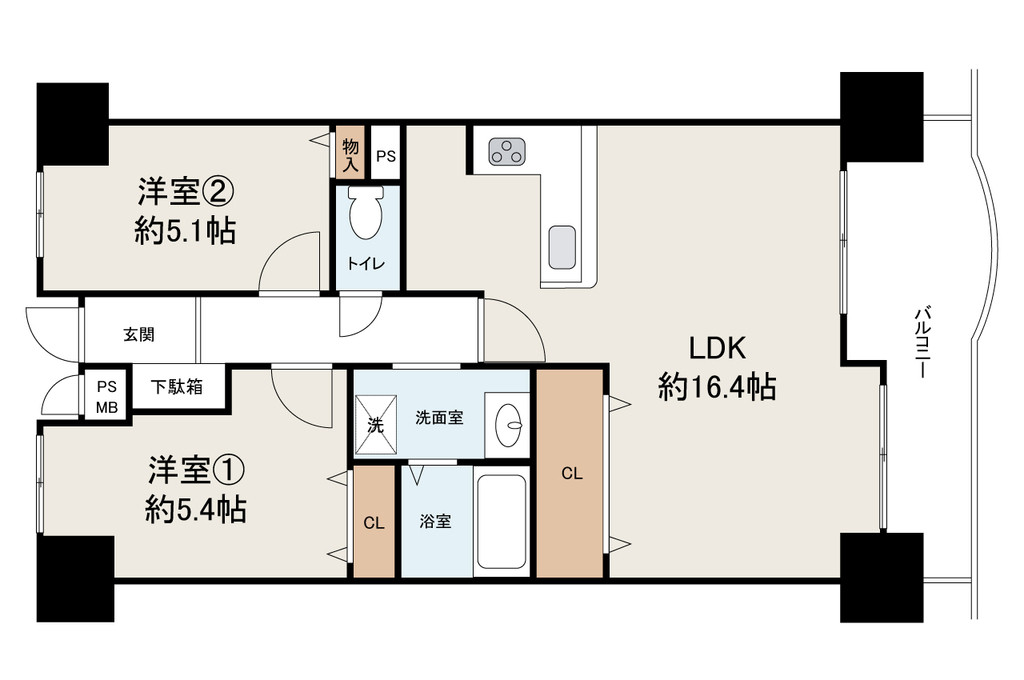 - 全居室洋室の2LDK